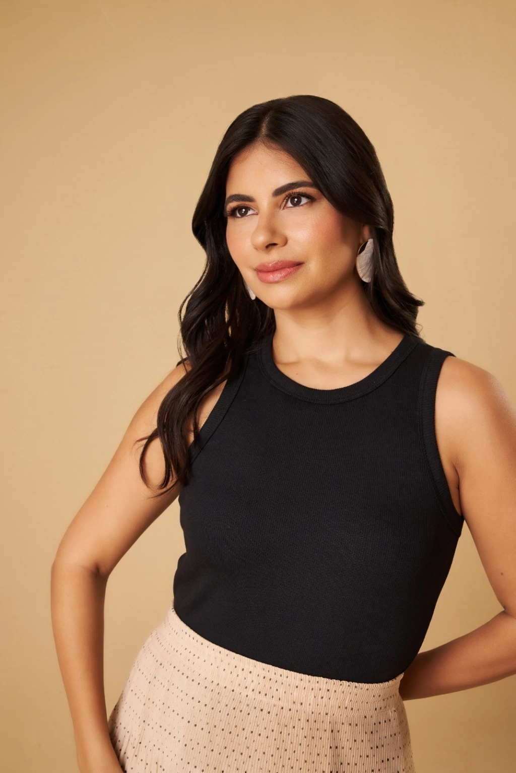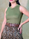 Gola redonda, sem mangas, ideal para dias mais quentes ou para composições com terceira peça.