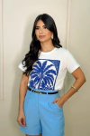 Short cintura alta, pregas frontais que conferem um caimento mais estruturado e elegante. Conta com bolsos laterais, passantes para cinto e é acompanhado por um cinto fino preto com fivela dourada. A barra é reta e o comprimento é médio, ideal para looks casuais e arrumados.