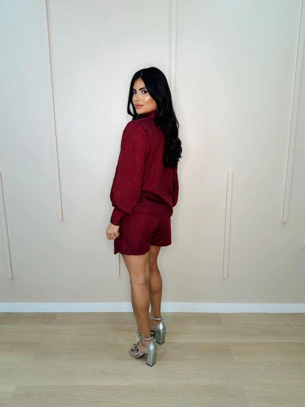 A modelo veste P/38 e tem 1,61m de altura.
